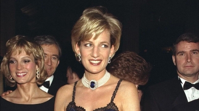 #历史上的时尚# 1996年#戴安娜王妃#第一次也是唯一一次出席Met Gala,一袭蓝色Dior蕾丝吊带裙和绸缎睡袍式外搭,造型十分新颖大胆,珍珠蓝宝石项链的点缀散发着低调奢华的贵族气息,
